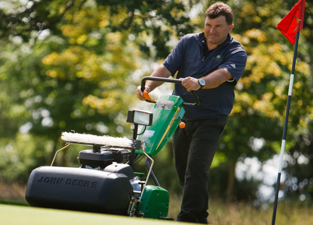 Cada vez más campos de golf eligen a John Deere. Desde cortadoras de césped individuales hasta escarificadores, podemos ofrecer una solución integral que simplifique su mantenimiento y reduzca sus costos de administración.