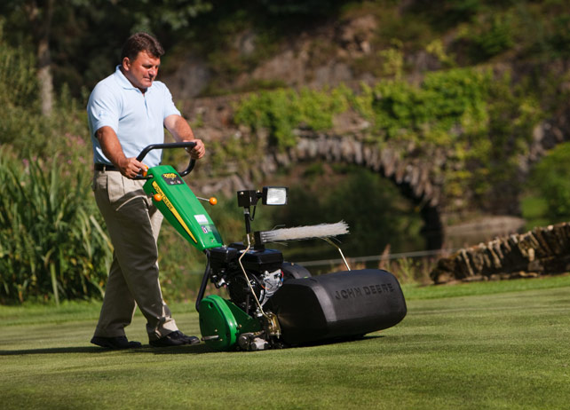 Lograr que una cancha de golf mantenga las condiciones óptimas para el juego es quizás el mayor desafío para quienes se dedican al cuidado de las mismas. John Deere cuenta tanto con Tractores cortacéspedes para greens como así también con Cortacéspedes manuales o de empuje.
